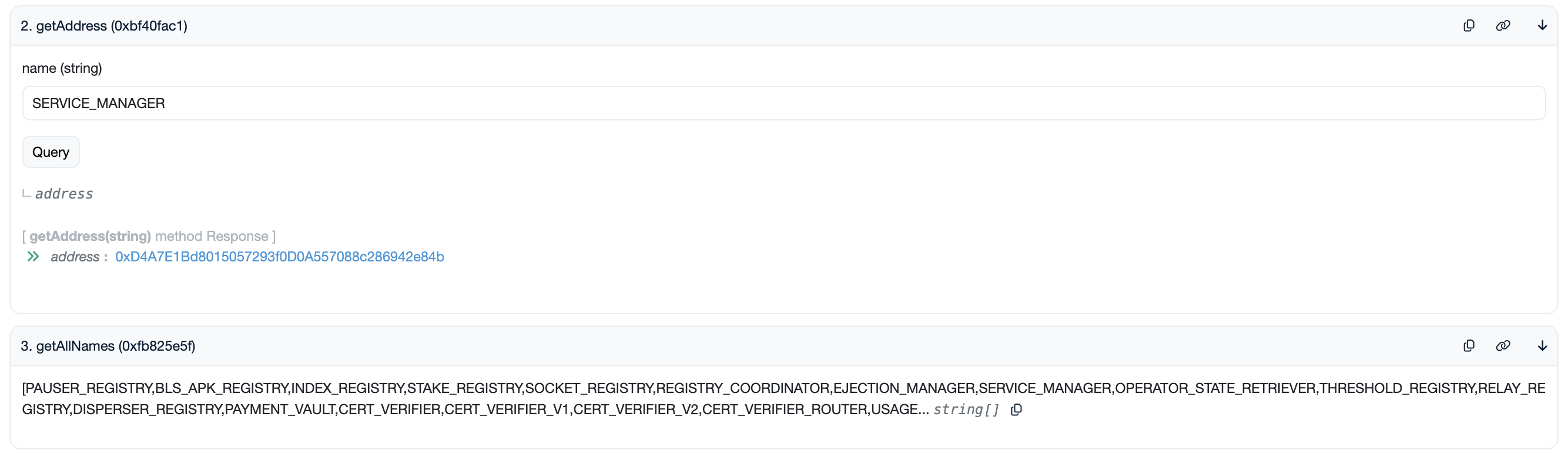 4. Click on "getAllNames()" function to see the name of all registered contracts.
